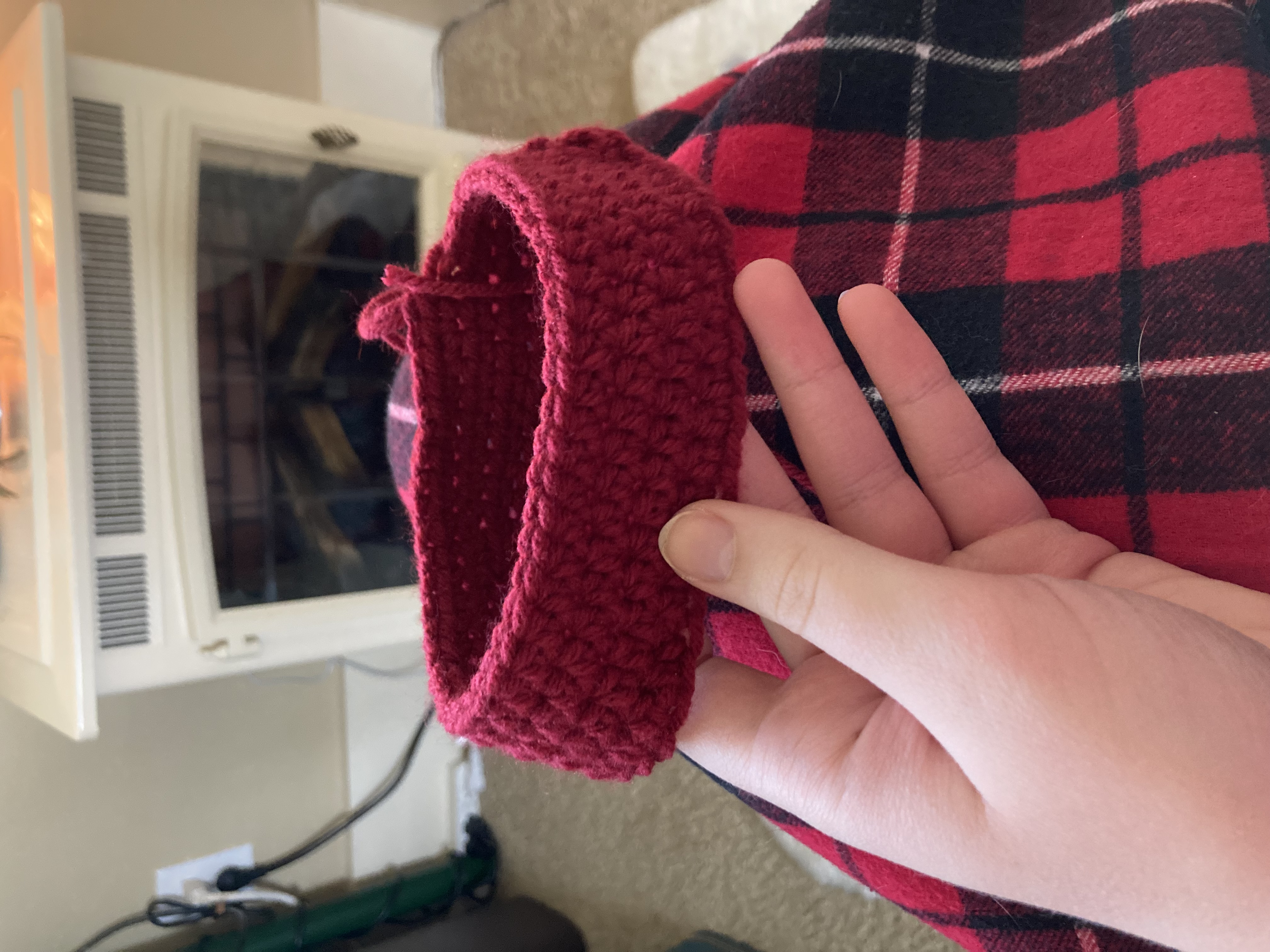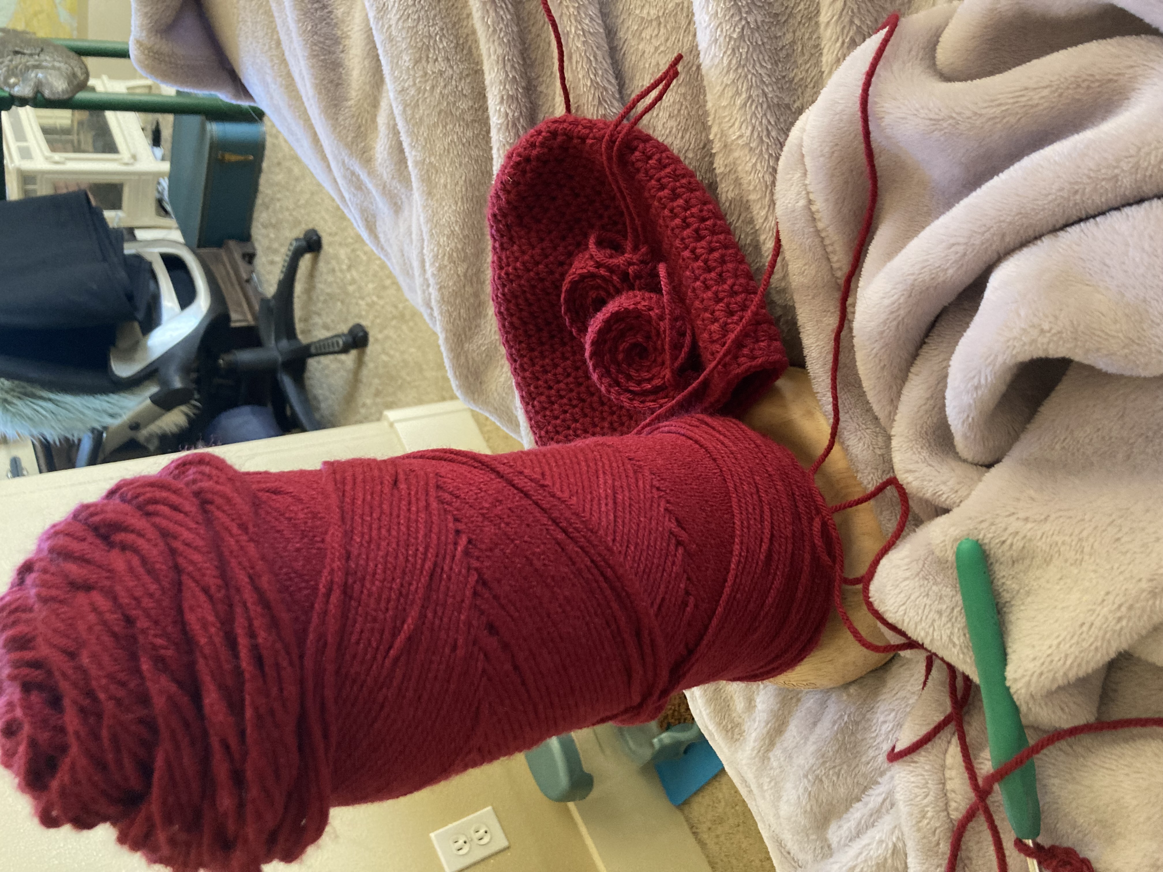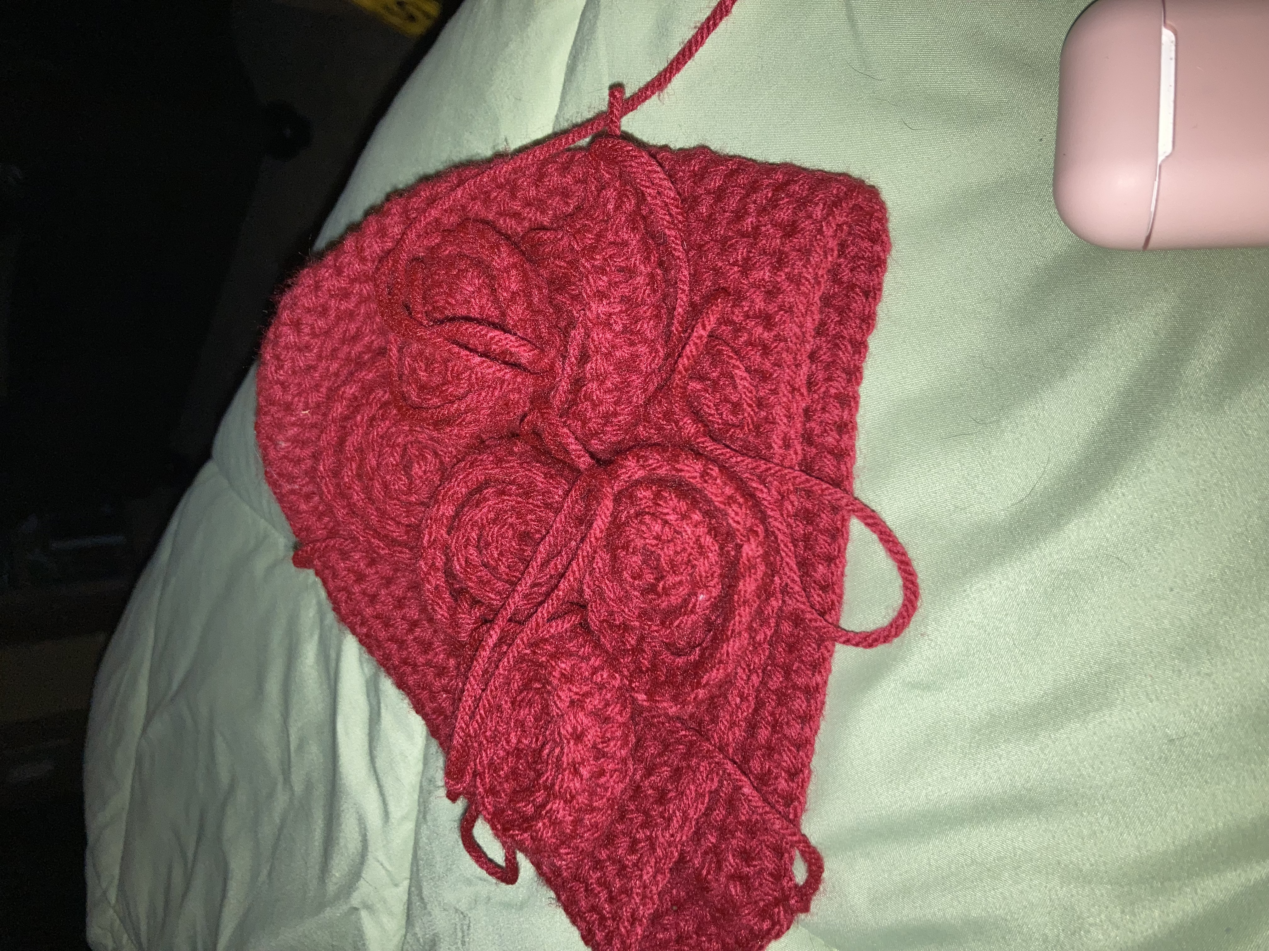 This is after the legs are finished and ready to move on to the next part! To make them curl, I did a loose chain and tight doubles.